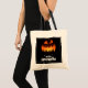 Le sac fourre-tout est affiché en naturel avec une empreinte citrouille Halloween effrayant. Customisez cet objet ou achetez tel quel. Image stock vecteezy.com