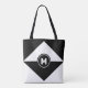 Sac fourre-tout géométrique moderne abstrait noir et blanc. Ma lettre peut être personnalisée.