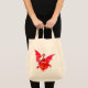 Un sac fourre-tout fort en "naturel" avec un design de dragon rouge fait d'un collage de papier peint à la main.