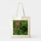Tronc de séquoia entouré de fougères et d'autres verdure.