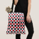 Ce sac fourre-tout personnalisé présente des coeurs rouges et noirs sur un arrière - plan blanc. Ce sac fourre-tout fait un grand cadeau pour toute occasion.