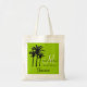 Sacs fourre-tout faits sur commande noirs verts à mariage de voyage pour les Caraïbe avec l'illustration de palmier. Customisez avec vos noms, date, monogramme et destination. Un grand cadeau bienvenu pour vos invités. Remplissez de choses de plage et d'information de mariage.