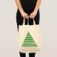 Pin (sapin de Noël) représenté par des lignes horizontales vertes de longueurs variables. Utilisez pour vos achats de vacances, ou pour tous les jours (vous sauvez des arbres en utilisant des sacs réutilisables).
