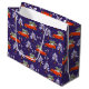 Une petite voiture rouge avec un sapin de Noël sur le dessus.