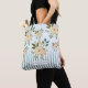 Sac en toile de style romantique vintage avec des bandes sur un fond bleu élégant et des fleurs. L'étiquette est une image à part et peut être modifiée ou enlevée. Vous pouvez ajouter un arrière-plan rectangulaire personnalisé. Idéal pour la mariée ou les proches.