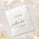 Chic crème légère sacs de faveur pour vos invités mariages avec "Love + Thanks" dans une typographie moderne simple et un script élégant avec des swashes, vos prénoms unis par un coeur et votre date mariage.