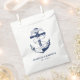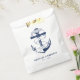 Sacs de faveur de mariage bleu et blanc marine. Idéal pour un mariage de la Marine (militaire) ou d'une maison de lac. Le design comporte une ancre enveloppée dans une bannière avec le texte "Ancré dans l'amour". Personnalisez-le avec vos détails mariages.