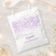 Un sac cadeau pour un 21e anniversaire girly et glamour (ou tout âge). Un arrière - plan blanc chic avec violet, lavande fausse parties scintillant gouttes, taches. Personnalisez et ajoutez une date, un nom et un âge de 21 ans. Le texte : Le nom est écrit en violet avec un script de style moderne écrit à la main.
