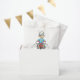 Un petit garçon sur un tricycle rouge appelle tous ses amis à sa fête d'anniversaire.