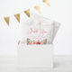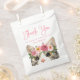 Belle fête d'anniversaire au thème du chat avec des sacs de faveur avec "Merci" exposés dans un script blanc rose avec un chat aquarelle peint avec des fleurs roses et mauves près du fond du design. Personnalisez les sacs d'anniversaire aquarelle avec votre message personnalisé et le nom de la fille d'anniversaire.