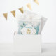 Un service de mariage personnalisé traite les sacs avec une aquarelle Eucalyptus vert thème botanique. Joli vert sauge pâle, bleu, or et blanc.