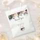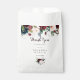Ces sacs d'aquarelle illustrés automne merci mariage sont parfaits pour un mariage simple. Le design est composé d'une aquarelle artistique peinte à la main bleu marine, bordeaux, rouge, roses roux et pivoines avec d'élégants feuilles verts, inspirant la beauté idyllique colorée de l'automne. Customisez les sacs à gâteaux avec un bref message de gratitude, y compris vos noms et la date. Utilisez ces sacs pour compléter une réception de mariage, une douche nuptiale, tout événement ou fête. Le design sobre et élégant présente une typographie de script classique et sophistiquée en noir et blanc.
