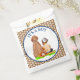 Le baby shower de garçon personnalisé Brown et bleu traite les sacs de faveur avec un bébé garçon assis à côté d'un chien avec un thème de baseball.