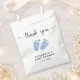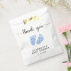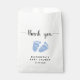 Sac mignon pour votre bébé garçon de douche faveurs avec "merci" dans un script élégant avec des swashes et une aquarelle bleue des pieds bébé.