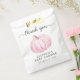 Jolie douche bébé fille merci pour un sac avec une aquarelle rose pastel d'un citrouille et "merci" écrit dans un script gris élégant avec des swashes.