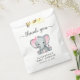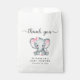 Joli merci fête sacs de faveur pour votre douche bébé fille avec "merci" écrit dans un script gris mou avec des swashes et une aquarelle rose pastel d'un éléphant bébé. Personnalisez le nom et la date de la douche de la future mère dans une simple typographie grise.