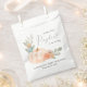 Un mignon sac de faveur neutre pour votre baby shower d'automne avec "A Sweet Little Citrouille Is On Her Way" dans un script gris élégant avec un swash de coeur, et un arrangement aquarelle d'un citrouille orange, florales et verdure. Personnalisez le nom de la mère et la date de la douche dans une simple typographie moderne gris clair. Vous pouvez spécifier le sexe du bébé si vous le souhaitez (par exemple, "est en route").
