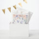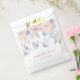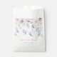 Sacs en papier baby shower de papillon fille mignonne avec des fleurs d'eau violet et rose avec une police calligraphique.