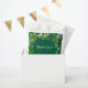 Des trèfles verts peints autour d'un arrière - plan vert. Le texte est blanc avec un contour vert et une ombre verte plus claire comme un baby shower entièrement personnalisable pour une mère.