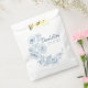 Elégant sac de baby shower bleu poussiéreux avec des illustrations florales de style chinoiserie et un nom et une date personnalisés. Parfait pour les bonbons, biscuits ou petits cadeaux de remerciement. Coordonnée avec la collection complète de Baby shower bleu Dusty.