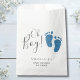 Ce mignon sac Baby shower Favor Boy est décoré avec les pieds de bébé parties scintillant bleue et les mots, Oh garçon! Facile à personnaliser.