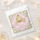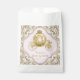 Baby shower rose et or privilégient les sacs avec belle voiture princesse or sur un joli arrière - plan rose et tourbillon or. Vous pouvez facilement customiser ce mignon sac de faveur baby shower en ajoutant le texte de votre choix, et vous pouvez changer la couleur arrière - plan.