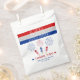 Red White et Due Le 4 juillet les pétards baby shower Merci privilégient sac en rouge, blanc et bleu. Le design présente les mots "A RED WHITE AND DUE" sur trois bandes, des pétards et des feux d'artifice ainsi que l'expression "Merci".