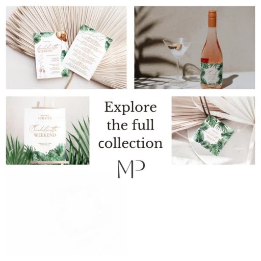 Cet élégant design personnalisé comprend une belle police manuscrite de script sur fond de feuilles tropicaux dynamiques. Il ajoute une touche de sophistication et de charme tropical à la fête de la bachelorette. Personnalisez-le facilement avec le nom de la future mariée et d'autres détails. Ce design unique est l'accessoire parfait pour une fête de bachelorette moderne ou un week-end de bachelorette inoubliable. Préparez-vous à embrasser les vibes tropicales et briller comme un diamant tout en célébrant dans le style. Conçu pour se coordonner avec la collection de Faire-part de mariage "Chloe", ce design complète parfaitement l'ensemble de la collection. Pour explorer tous les objets correspondants dans ce beau design, cliquez simplement sur le lien de collection fourni sur cette page.