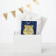 L'arrière - plan en marbre bleu représente la stabilité et la force. Insigne d'or customisé avec le nom et la ville de l'officier qui prend sa retraite ou qui est diplômé. Une clientèle d'Invitations dans le style de cette belle décoration et décoration de fête masculine.