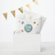 Complétez les faveurs du premier anniversaire de votre garçon avec ces adorables sacs de remerciement d'anniversaire. Les couleurs bleu et orange du ballon et des étoiles sont apaisantes et belles. Personnalisez le texte avec votre propre. Illustré et dessiné par Patricia Alvarez.