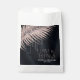 Optez pour un look éblouissant, éblouissant et glamour en utilisant les pièces de cette suite mariage comme indiqué, avec des bijoux en cascade des feuilles de palmiers incrustés de diamants ou supprimer les couches de bijoux pour un look un peu plus conservateur. Cet ensemble présente des feuilles en or rose chatoyant contre un arrière - plan bleu marine et texturé. Le sac de faveur "Love & Thanks" mariage montré ici a une bordure de feuilles pétillants, une police serif élégante avec le nom de la mariée et du marié et la date du mariage. Entrez facilement vos propres informations de mariage en utilisant le modèle fourni. Affichez le lien de collection sur cette page pour voir tous les éléments correspondants dans ce bel ensemble ou recherchez ID830 pour voir d'autres options de couleur pour cette conception.