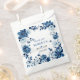 Bleu floral Chinoiserie garçon Baptism Merci faveur sac. Elégante Chinoiserie florale bleue Baptism sac de remerciement avec un design d'inspiration porcelaine. Des pivoines gracieuses à l'encre traditionnelle dans une riche palette de cobalt et d'indigo, accentuées par des reflets blancs immaculés. Le cadre de carré à aquarelle fleurie recouvre un espace feuille pour un message de "Merci" chaleureux.