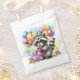 Fête d'anniversaire à thème pour un garçon ou une fille. Raton laveur aquarelle avec ballons colorés en vert, jaune, orange, rose, violet et bleu.