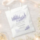 Mariage d'hiver merci préférez les sacs à l'aquarelle pittoresque dans les tons lavande et gris. La scène de la neige présente un paysage de montagne romantique avec des pins, des dérives et une légère neige. Si vous souhaitez faire correspondre des produits, s'il vous plaît parcourez ma collection de forêt d'hiver.