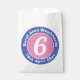 Sac de bonbons pour la fête d'anniversaire des enfants. Commémorez un 6ème anniversaire avec un sac qui est décoré avec le nom du destinataire, ainsi que leur âge, et la date de naissance. 6 ans. Sac de sucreries pour la fête d'anniversaire.