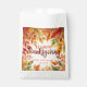 Voici notre sac de faveur de Thanksgiving personnalisable - l'ajout parfait à vos célébrations de vacances ! Le design présente un fond blanc propre, magnifiquement encadré par une bordure vibrante de feuilles d'automne dans des tons riches de rouge, orange, jaune et vert. Le design capture l'essence de l'automne, créant une atmosphère chaleureuse et accueillante.
