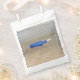 Ce design comprend une bouteille posée sur la plage. La belle couleur de la bouteille bleue contraste avec le sable doré, ce qui en fait un parfait assortiment. La bordure blanche et fine encadre parfaitement la bouteille bleue lavée sur le sable et correspond à la typographie moderne de couleur blanche. Design romantique de plage avec un mélange de simplicité et d'élégance. Ce design est idéal pour une destination balnéaire ou une mariage à thème bleu. Le mariage parfait de la plage bleu d'été design de sac de faveur. Des invitations de mariage et d'autres articles de papeterie sont également disponibles.