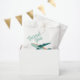 Ce modèle de sac de baby shower moderne et mignon présente un design de voyage en avion bleu, avec ciel bleu et nuages. Il y a aussi de la place pour ajouter vos propres noms/textes.
