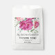 Branches avec fleurs roses roses et sac de faveur de mariage de typographie. Cet élégant sac de faveur de mariage présente des branches ornées de fines fleurs de roses roses et de feuilles verts doux et sauge. Les noms du couple sont artistiquement exposés dans une typographie stylisée, lui donnant une touche personnelle. Un message chaleureux de "Merci" est également présenté, le tout encadré par une fine bordure subtile qui élève l'aspect général.