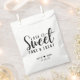 Un sac de faveur de mariage moderne et chic à offrir à vos invités. Il dispose d'une combinaison de police simple moderne et de calligraphie lettrant disant "L'amour est doux Prenez un soin" Personnalisez-le avec vos noms et date mariage.