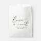 Sacs simples et élégants de faveur de mariage, avec "l'amour est doux" en couleur calligraphie moderne noire. Personnalisez avec vos noms et votre date de mariage.