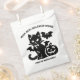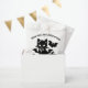 Envoyez vos salutations d'Halloween avec un sac de gâterie tout à fait enchanteur ! Cette conception en noir et blanc présente un chat noir magique avec des ailes de chauve-souris, une lanterne jack et des chauves-souris volantes éffrayantes. L'expression ludique "Meow-gical Halloween Wives" donne un ton charmant, tandis que la ligne personnalisable "From the Martin Family" ajoute une touche personnelle réfléchie. Idéal pour les fêtes en classe, les astuces, les paniers de bières ou les faveurs de la fête d'Halloween !