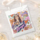 Ajoutez une touche de flower power à votre enterrement de vie de jeune fille avec ce modèle de sac à cadeaux groovy. Répandez la paix et les bonnes vibrations avec ce design coloré dans le style graphique de l'ère hippie des années 60 et 70. Avec des éléments de design audacieux et colorés et une police accrocheuse, il annonce le "Dernier Boogie de Célibataire" pour la future mariée. Ajoutez votre nom et la date de l'événement en utilisant le modèle fourni. Recherchez l'ID929 pour voir d'autres produits de la collection funky.