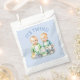 Joli sac de baby shower à thème bleu et vert avec deux jumeaux. "Ce sont des jumeaux".