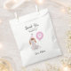 Un sac de faveur amusant et mignon pour la fête d'anniversaire du chien chiot de votre enfant. Illustration d'un chien avec casquette rose et ballon. Le texte dit "merci d'être venu à ma paille !" Customisez ce produit en ajoutant le nom de votre enfant au bas. Idéal pour la fête d'anniversaire d'une fille.