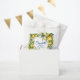 Célébrez la future maman avec ces sacs de faveur inspirés de citrons vintages. Ces sacs de faveur Vintages en Baby shower de citrons peuvent être customisés avec vos propres détails. Le design est composé de texte bleu et d'oeuvres d'art réalistes au citron.