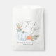 Un joli et mignon sac de faveur pour votre bébé douche garçon avec "Merci" dans un script gris élégant avec un swash de coeur, et un bouquet d'aquarelle d'un citrouille bleu pastel, fleurs orange et verdure. Personnalisez le nom de la mère et la date de la douche dans une simple typographie moderne gris clair.