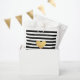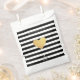 Ce design présente des rayures noires et blanches classiques avec un coeur en faux or au centre. Personnalisez avec un nom et votre ville (facultatif).