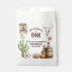 Saddle up et merci à vos invités pour une fête de premier anniversaire de cowboy à l'occidentale amusante. Ce sac de faveur fête présente des éléments d'une fête d'anniversaire de rodéo parfaite, y compris un cactus, une guitare, une roue de wagon, des algues et bien plus encore! Des ornements de style occidental décorent le sac pour créer un thème unique pour un premier anniversaire ou d'autres fêtes d'anniversaire d'âge. Disponible avec des produits correspondants.
