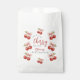 Célébrez l'arrivée de votre petit "Cerise sur le dessus" avec ce sac Favor fantaisiste et inspirant en rouge, vert et rose et arc ruban pour votre Baby shower. Elément généré par l'IA